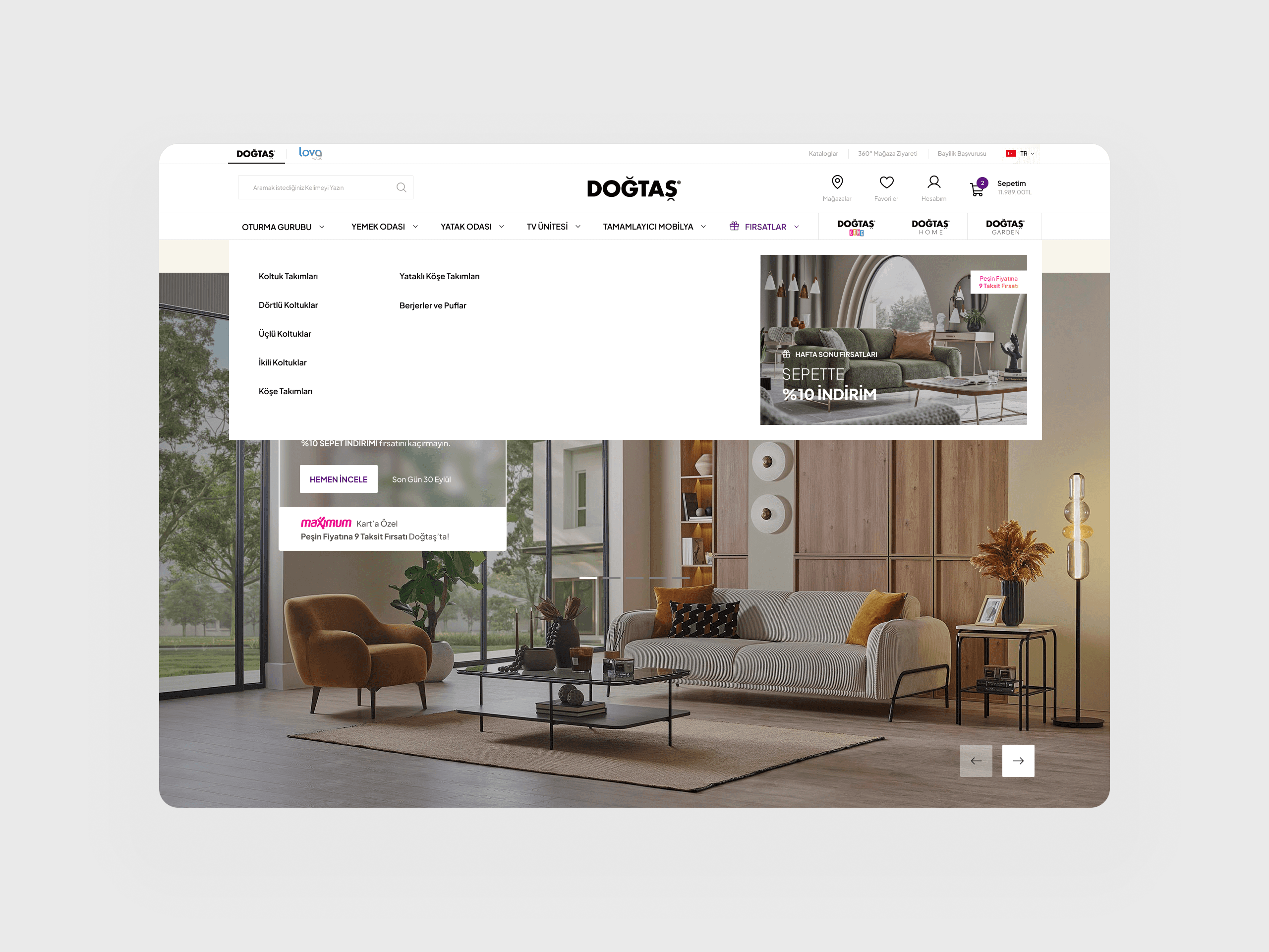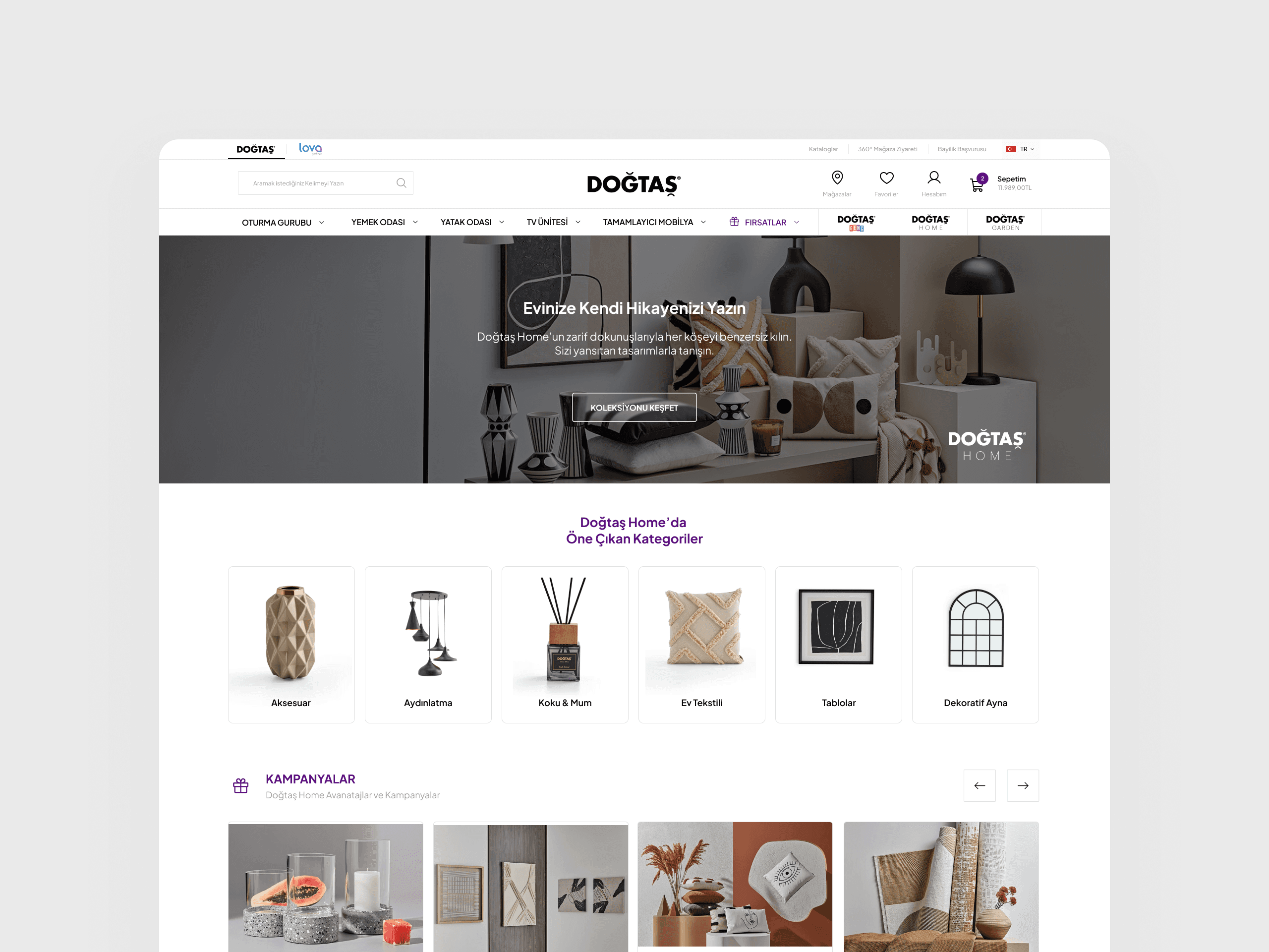 Doğtaş is one of Turkey’s leading furniture brands, known for its quality craftsmanship and wide product range. The project aimed to transform its old catalog-style website into a fully functional e-commerce experience that feels modern, dynamic, and premium — while preserving the brand’s heritage.