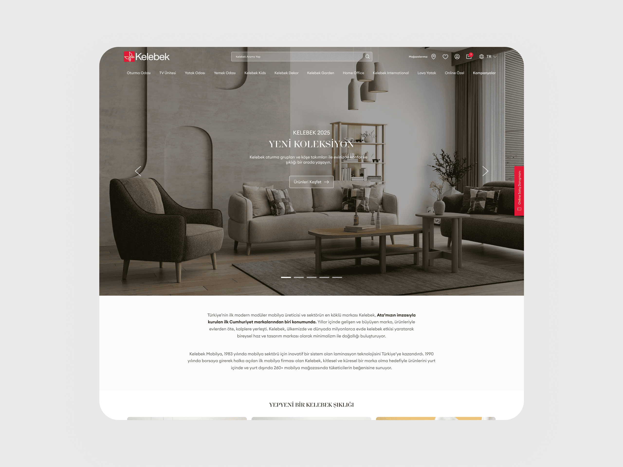 A redesign project for Kelebek.com, one of Turkey’s leading furniture brands. The goal was to modernize the e-commerce experience by improving usability and aligning the digital identity with the brand’s strong corporate image. The result is a cleaner, more intuitive interface that feels both premium and user-friendly.