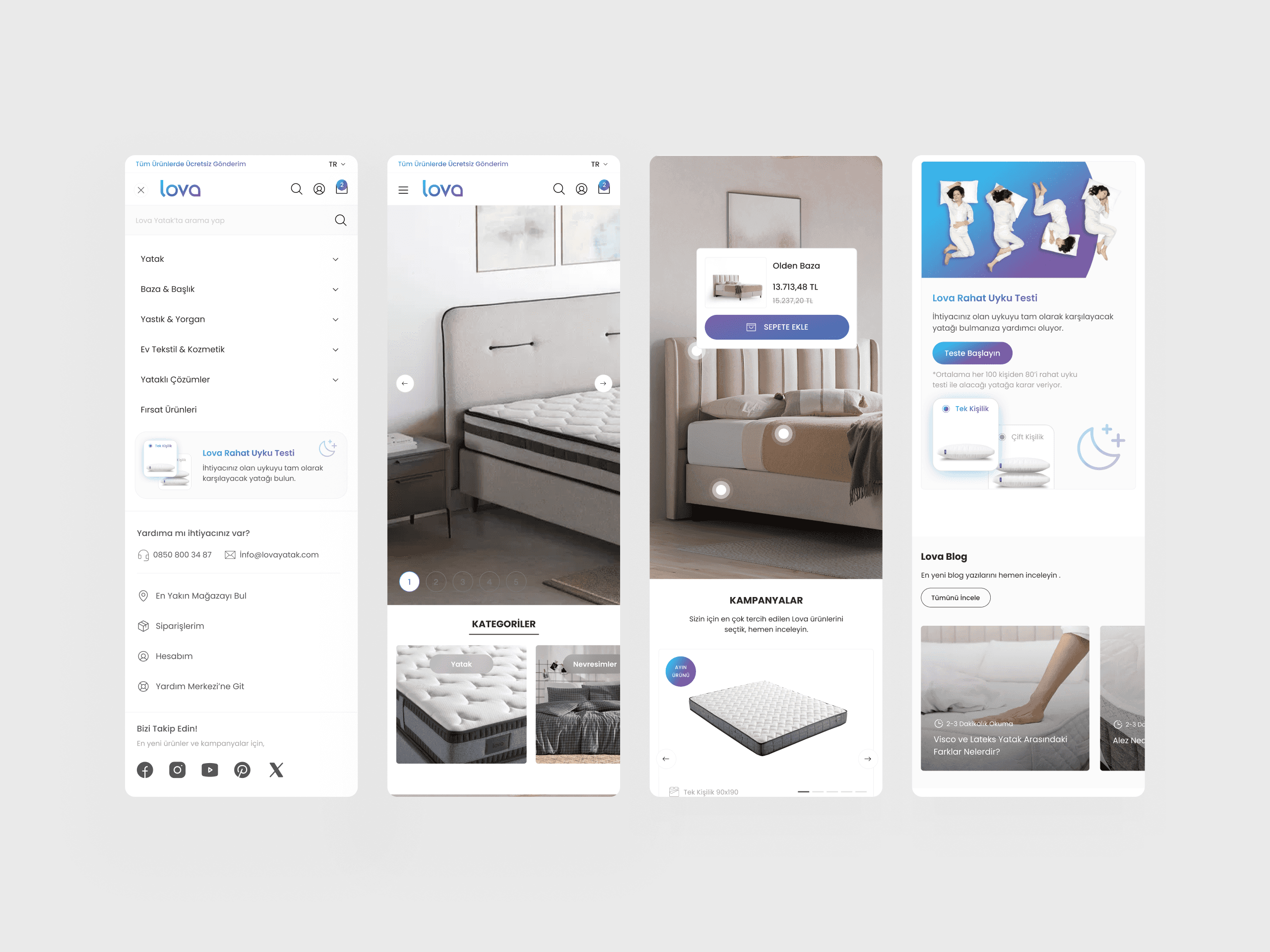 The new design focused on clarity, warmth, and trust. We restructured product discovery with simplified filters and visual cues while incorporating lifestyle imagery and soft color palettes that evoke calmness. The result is a digital experience that blends performance with emotion — helping Lova Yatak position itself as both functional and aspirational.