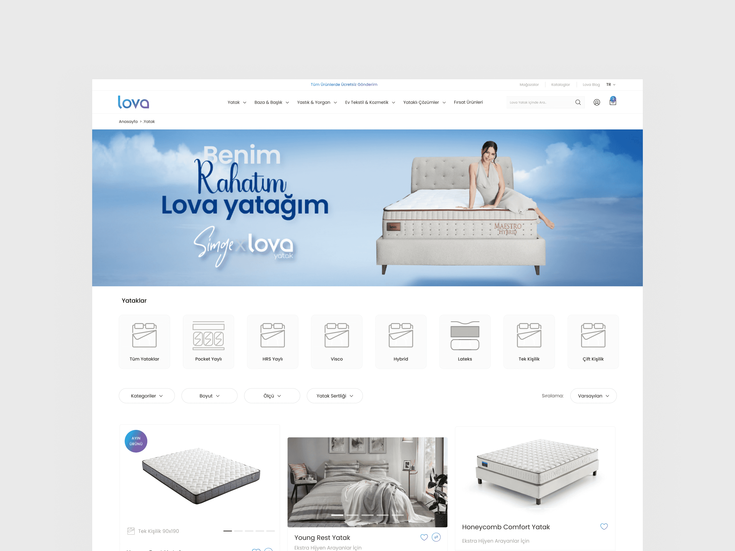 Lova Yatak is a modern sleep and comfort brand focusing on innovative mattress design and well-being. The redesign project aimed to strengthen the brand’s digital presence with a smoother shopping flow and a more emotional, lifestyle-driven visual tone that reflects rest and comfort.