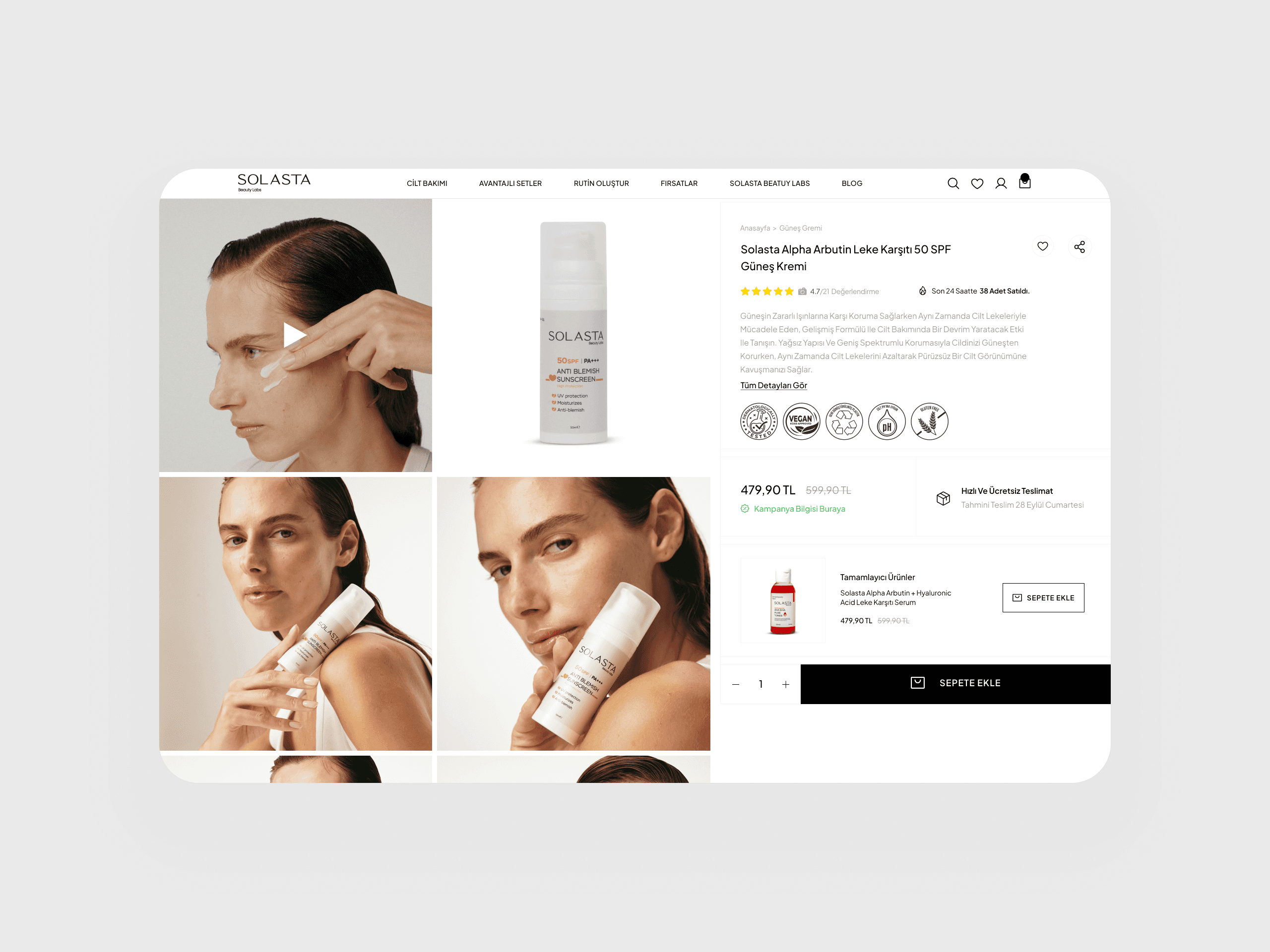 A comprehensive redesign for Solasta Beauty Labs, a vegan, science-driven skincare brand. The new site elevates brand perception and enhances usability by showcasing premium formulations and compelling visuals.